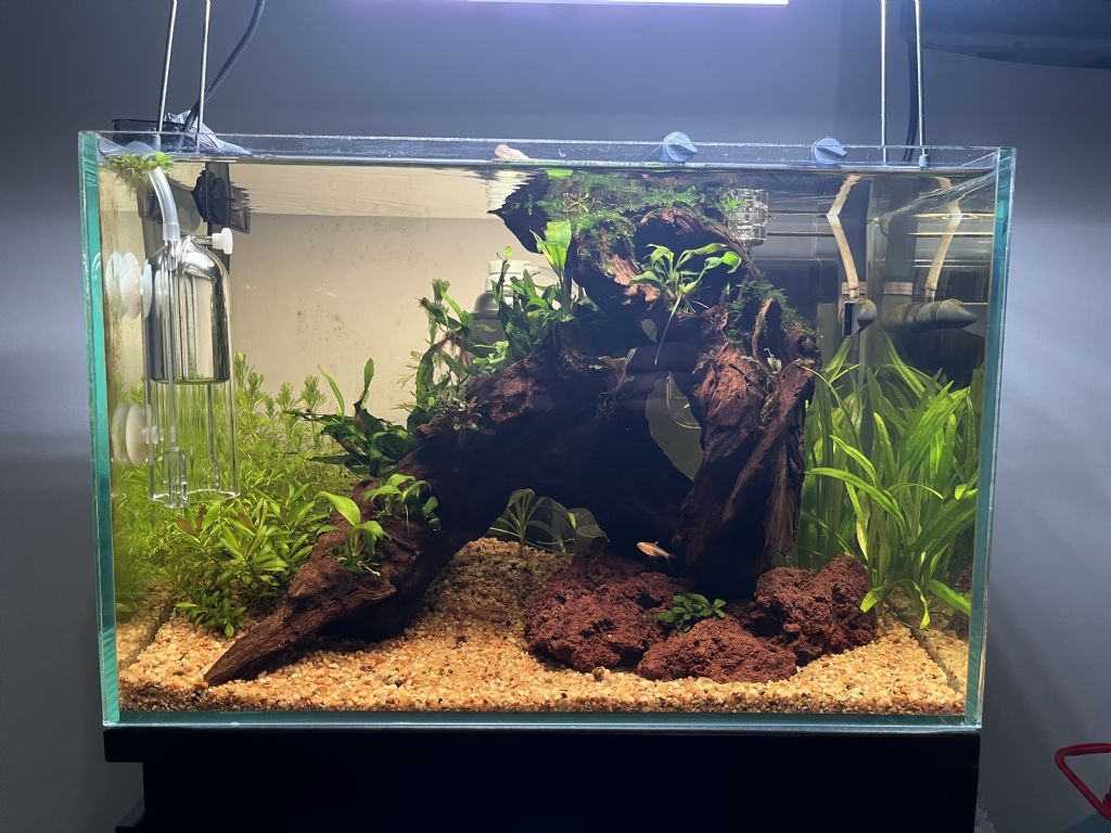 Merhaba, 2. tankım olarak bir erkak betta ve iki boynuzlu nerite için nano tank kurmak istedim. Akvaryumu kurduk fakat İstanbul da istediğim gibi bir betta bulamadım maalesef. Bitkiler konusunda çok endişeliyim beremeyeceğim diye çok stres yapıyorum. Arka planda 7 cm kum içerisinde 2 tane jbl misket gübre kullandım. Akvaryumcumun tavsiyesi üzerine Flourish excel kullanmaya ve günlik 6 saat ışık vermeye başladım bugün. 1 hafta sonra ki su değişiminde de tropica nın specialised nutrition koyarak ilerleyeceğim. Günlük çok ufak yem atarak bakteri döngüsünü başlattım. Aklıma gelenler bunlar tavsiyelerinizi şiddetle bekliyorum ve şimdiden teşekkür ederim.