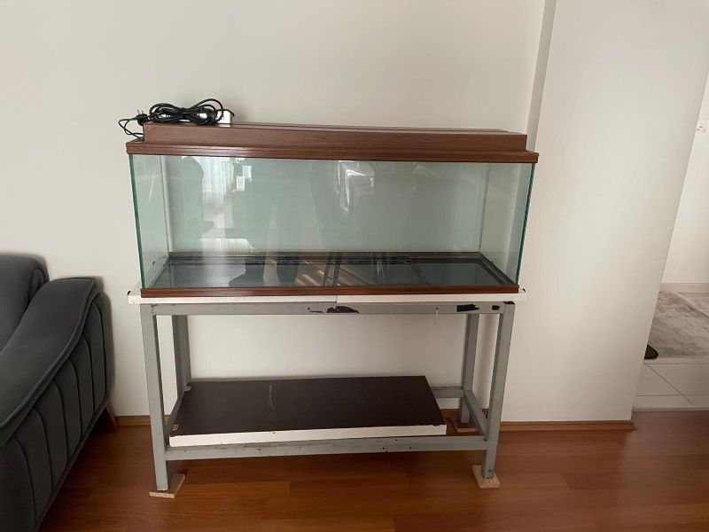 Satılan Malzeme(ler): 130x40x50 Akvaryum (Profil sehpası ile beraber) uygun armatür var.
