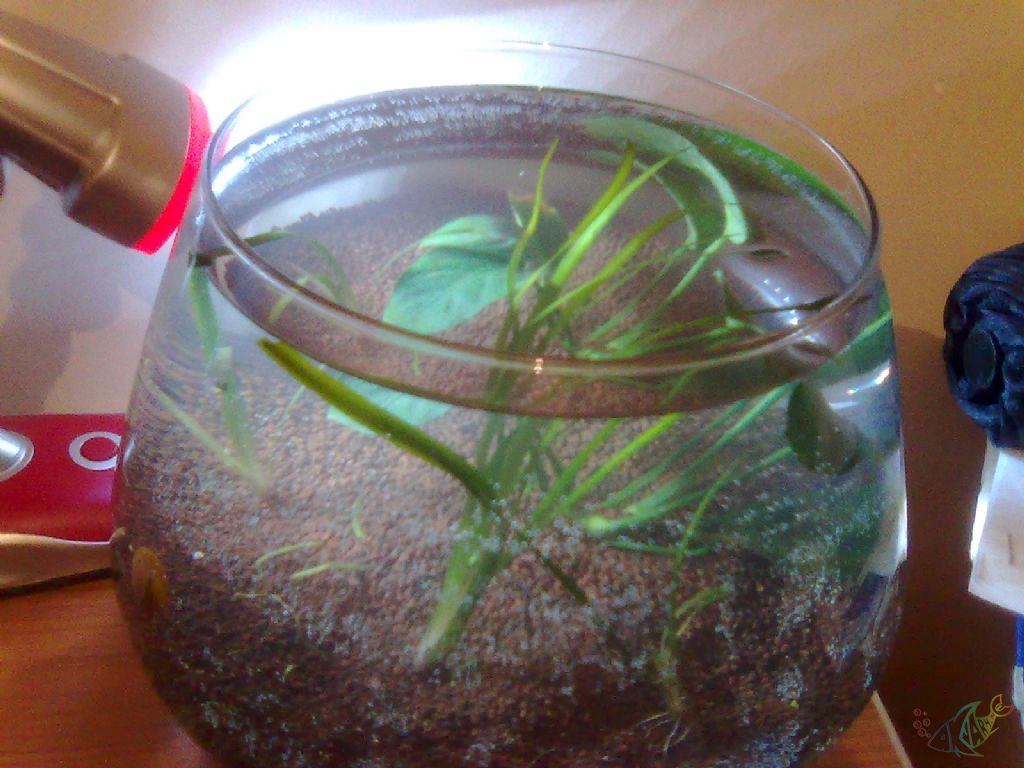 Şuan bir nano karides akvaryumu daha doğrusu fanusu kuruyoruz bitki dikimini gerçekleştirdik (bir adet anubias bateri) suyumuzu dinlendiriyoruz bir iki gün sonra karideslerimizi koyacağız.