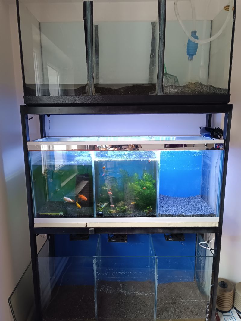 Üç adet üçer bölmeli akvaryum