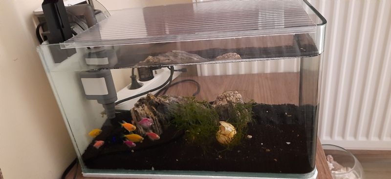 Diğer Ek Bilgiler: 4 adet transgenetik tetra, yaklaşık 2 2.5 kg hagen kum, 3 adet gnays kaya, sunsun şelale filtre polikarbon buhar camı