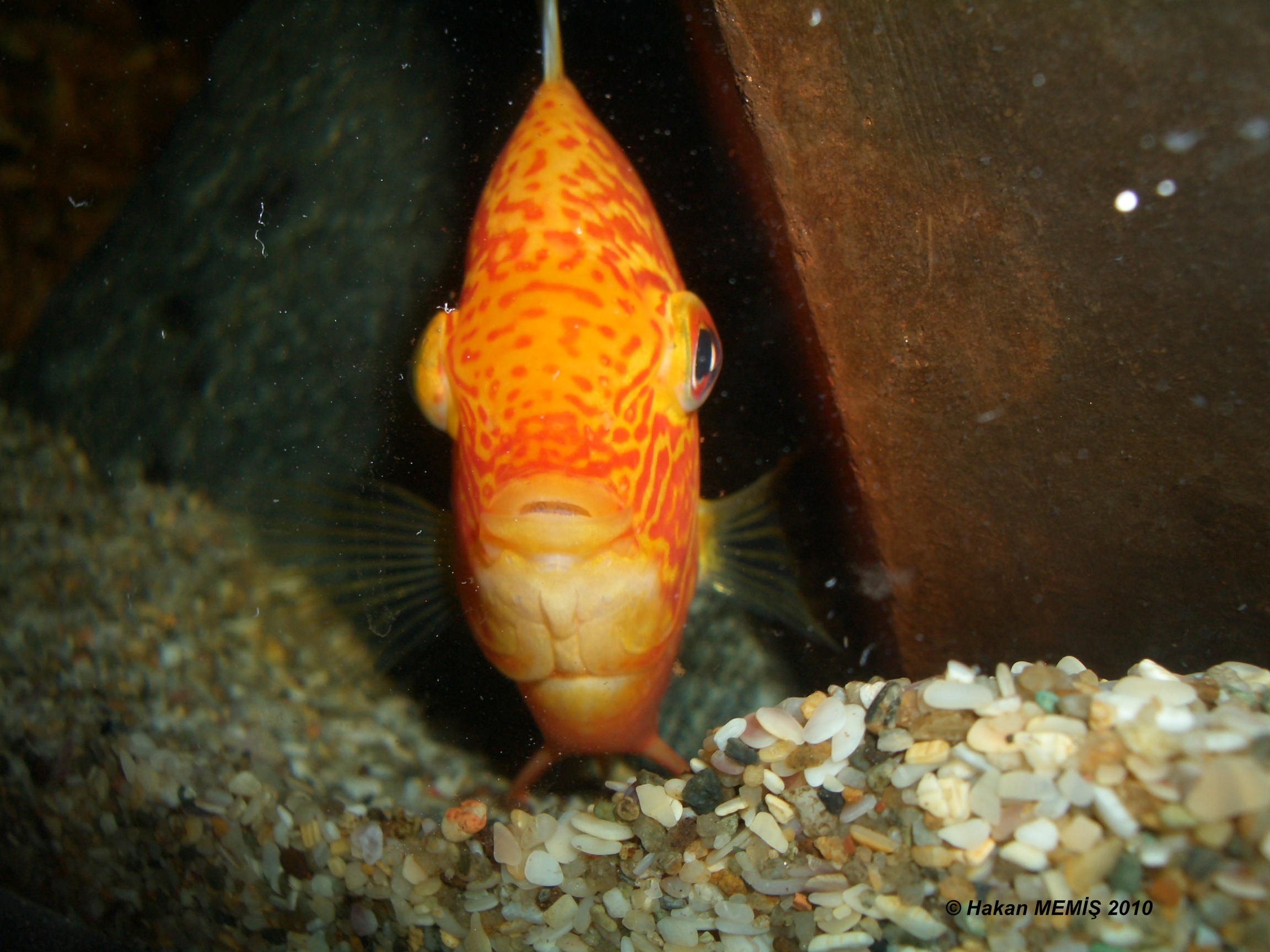 500 litre hacimli "Karma Amerikan" tankımda, 2.5 aydır bulunmaktadır. Mevcut boyu yaklaşık 12 cm' dir. NLS Cichlid Formula, Tropical Spirulina Granulat, Tetra Diskus, Ocean Free "SuperTubifexWorm", haşlanmış bezelye-ıspanak vb. yemlerle beslenmektedir. Fotoğraflar Casio Exilim EX-Z40 ile flaşlı olarak çekilmiştir.