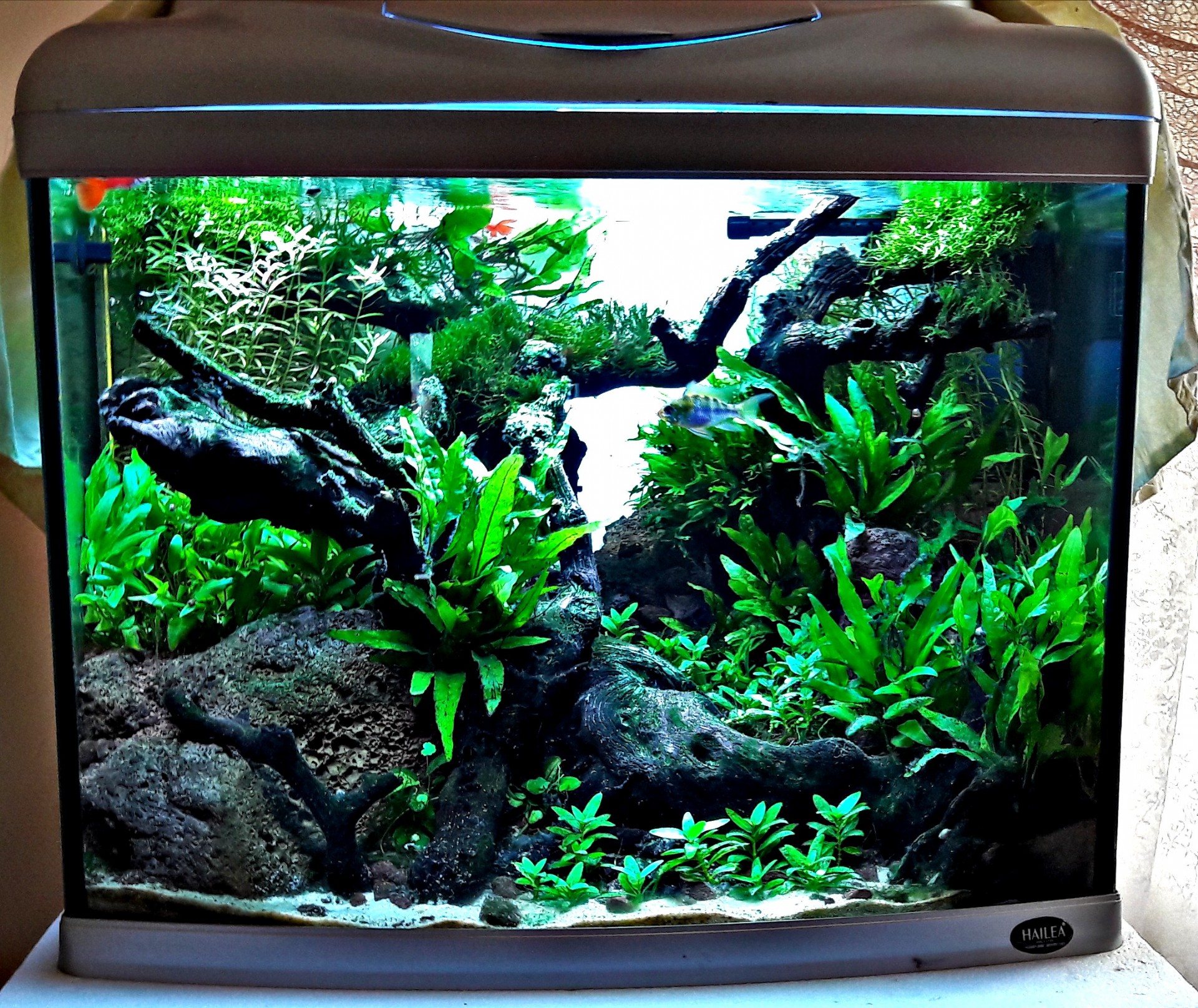 Ölçüler:48.36.42 haila ithal akvaryum Canlı Türleri:1.ramirezi 2.fullred lepistes Bitki Türleri:sp japan . Repens . Micra . Riccia moss flame moss java fern Tankın Yaşı:4 ay Filtrasyon ve Işıklandırma: hailea ic filtre sunsun 603b dis filtre 2×15w grolux ve akvaryumun kendi isigi 24 watt pl lamba beyaz mavi 9000k Tasarım ve Dekorasyon:wine wood lav kayasi taban malzemesi lav kirigi jbl aquabasis jbl monado jbl misket gubre ve reeflowers 6li set