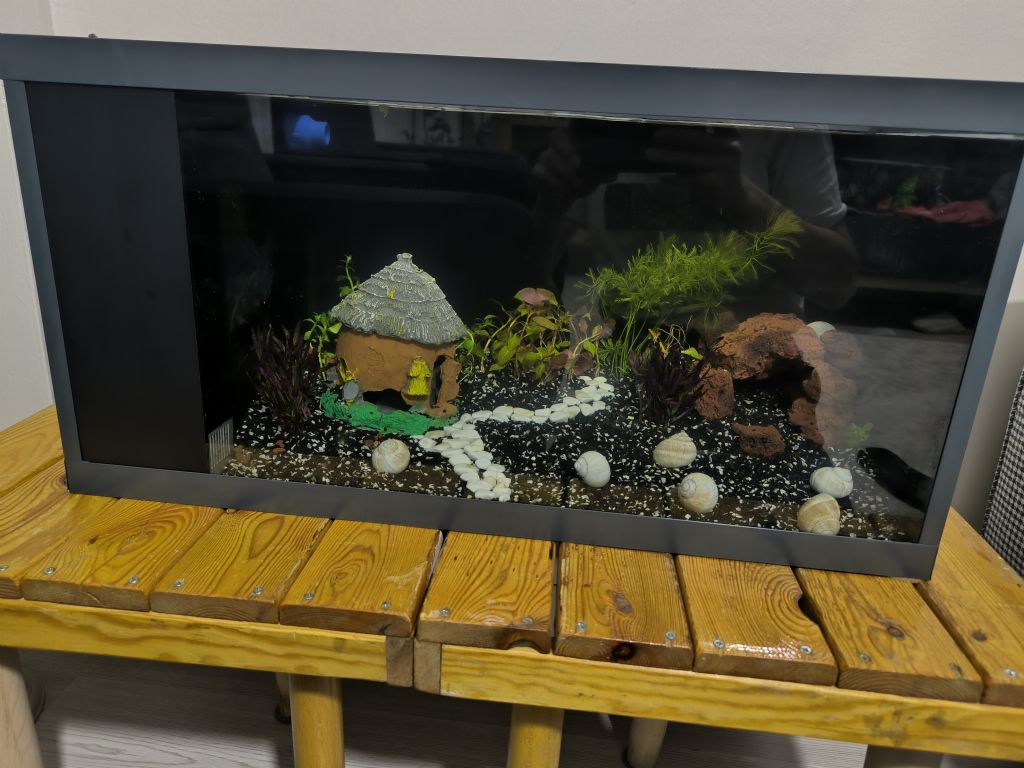 Eski akvaryum küçük olduğu için filtre koyamamıştım. Bu yüzden çok çabuk kirleniyordu. Aşağıya eski akvaryum görselini de bırakıyorum.