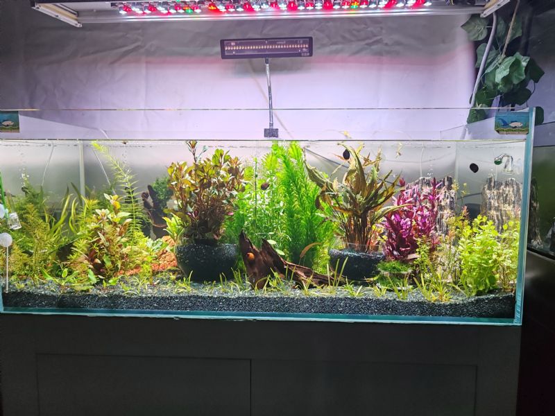 Poecilia reticulata (Lepistes - Guppy),Poecilia sphenops (Siyah Moli - Black Molly),Ancistrus sp. (Cüce Vatoz - Boynuzlu Vatoz),Symphsodon aequifasciatus (Discus),Neocaridina davidi (Kiraz Karidesi),Paracheirodon innesi (Neon Tetra),Anubias barteri var. barteri,Anubias barteri var. Nana ,Egeria densa (Eledoa),Taxiphyllum barbieri (Java Moss),L144 (Ancistrus sp. 4),Planorbis rubrum (Ramshorn Salyangoz)