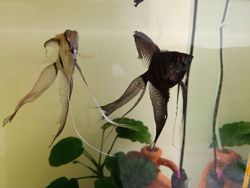 Sağlıklı, hareketli, çeşme suyuna alışık balıklardır. Tül cinsindendir. Bulundukları tank 90ltdir. Ebatlarına oradan belki çıkarımda bulunursunuz. Elimle göstermeye çalıştım ama çok hareketliler, her yaklaştığımda yem istiyorlar:)